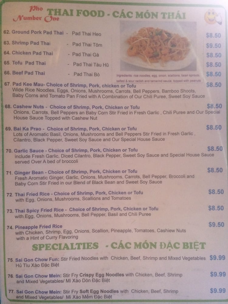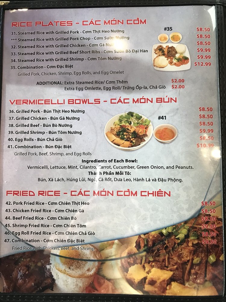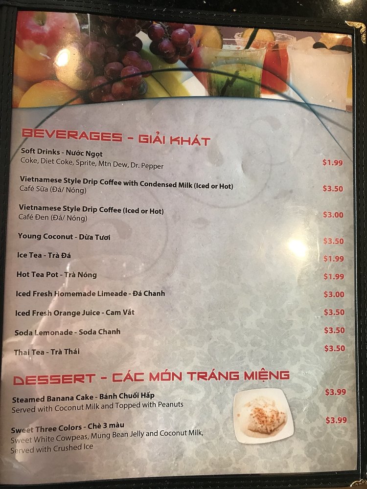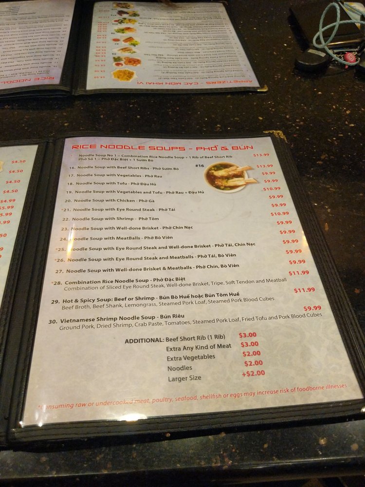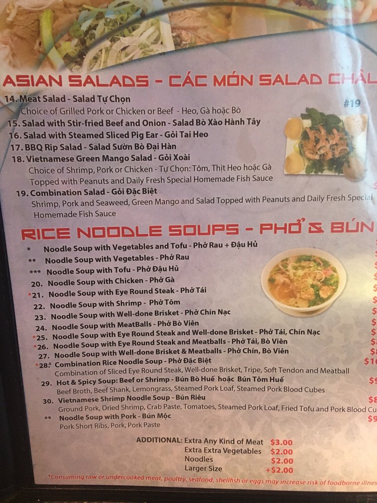 Introducing the menu at Pho Number One, located in Mesa, AZ, this Vietnamese restaurant offers a variety of dishes perfect for lunch or dinner. From appetizers like Shrimp and Pork Spring Rolls to Asian Salads and Rice Noodle Soups, there are plenty of delicious options to choose from. Customers have raved about the flavors and quality of the food, with favorites including the Combination Pho and Grilled Beef Wrapped with Betel Leaf. The welcoming atmosphere and efficient service make dining here a pleasant experience. Don't miss out on trying the Coconut Drink, a unique and refreshing beverage option. Overall, Pho Number One stands out for its authentic Vietnamese cuisine and excellent customer reviews, making it a must-visit for food enthusiasts in the area.